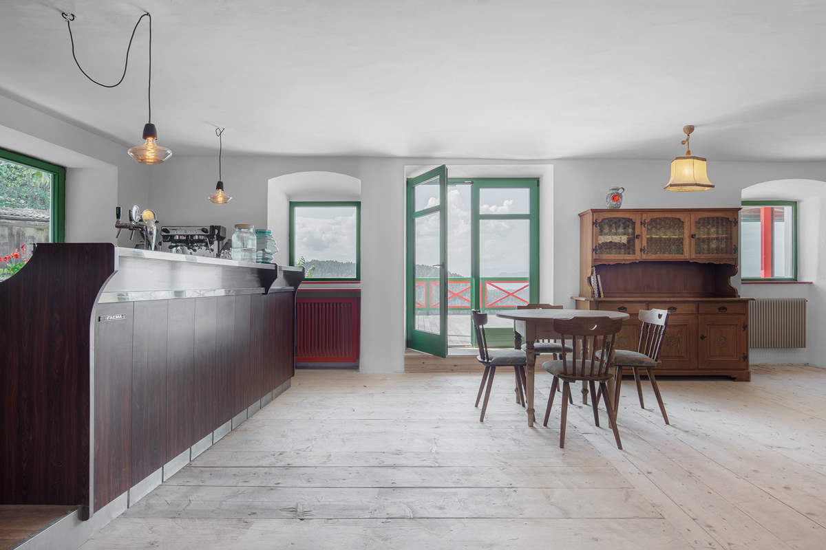 Nach jahrzehntelangem Ruhestand wurde das Gasthaus Dreiviertelweg auf 1325 m Höhe am Pilgerweg nach Maria Weißenstein behutsam revitalisiert. Die Einkehrstätte, einst Treffpunkt für Pilger, Sommerfrischler und Dorfbewohner, verbindet Tradition mit sanfter Modernisierung. Bestehende Bausubstanz wurde erhalten, originale Materialien und Mobiliar neu interpretiert. Farben und Details greifen Historisches auf und schaffen ein stimmiges Ganzes. Unpassende Zubauten wichen einer stilvollen Veranda als Speisesaal. Hier finden Gäste bewusste Reduktion, fernab von Unterhaltungselektronik. Das "Farm-to-Fork"-Prinzip bringt regionale Zutaten auf den Teller. Vergangenheit und Gegenwart vereinen sich zu einem authentischen Ort der Einkehr.