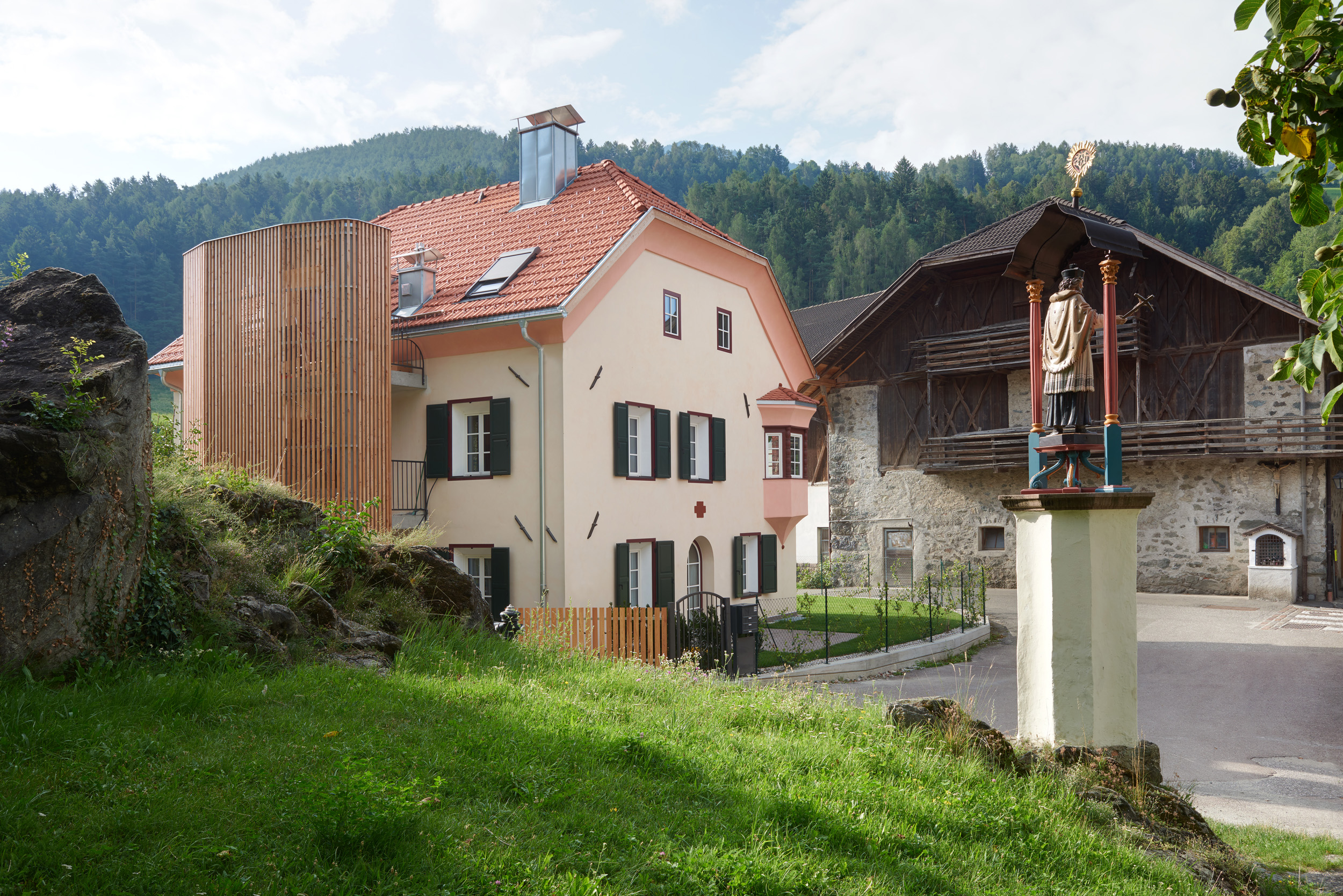 Im historischen Ortskern von Gufidaun, erhebt sich das „Gugentonele“ Haus. Benannt nach dem ehemaligen Schuster, welcher im Erker des Hauses seine Werkstatt eingerichtet hatte, ist es seit Anfang 20. Jahrhundert fester Bestandteil des Ortsbildes. Daher soll das Gebäude samt umgebendes Grundstück, in seiner Form und Größe, erhalten bleiben. Drei Wohneinheiten werden in das ursprünglich benannte "Lackenhaus" behutsam integriert. Die Erschließung wird aus dem historischen Gebäude ausgelagert und in einem kompakten, schlichtes Volumen gebündelt. Die historischen Kalkputzoberflächen werden mit natürlichen Materialien - Lärchenholz und Sichtbeton - ergänzt und schaffen so eine gelungene Symbiose zwischen Neu und Alt.