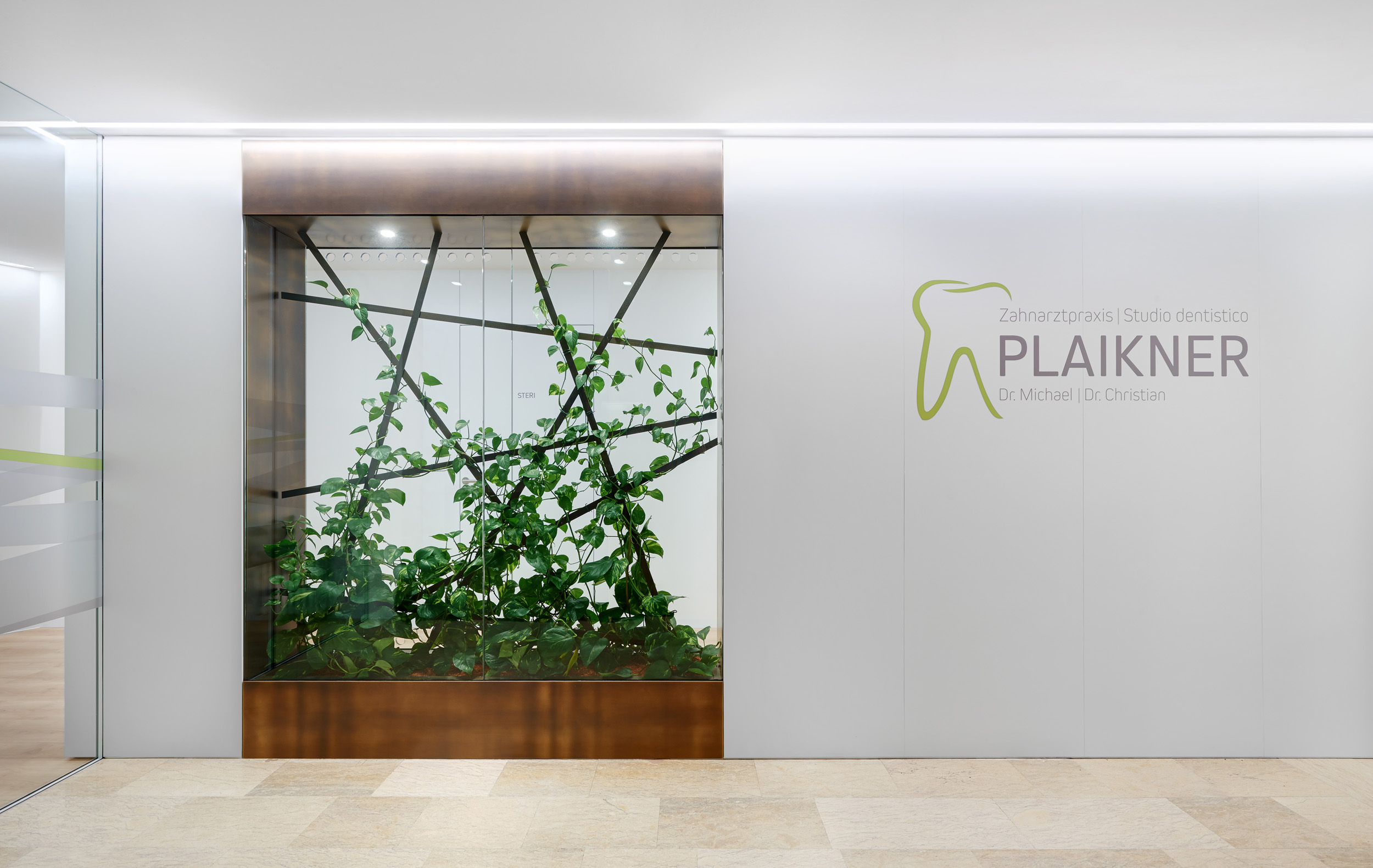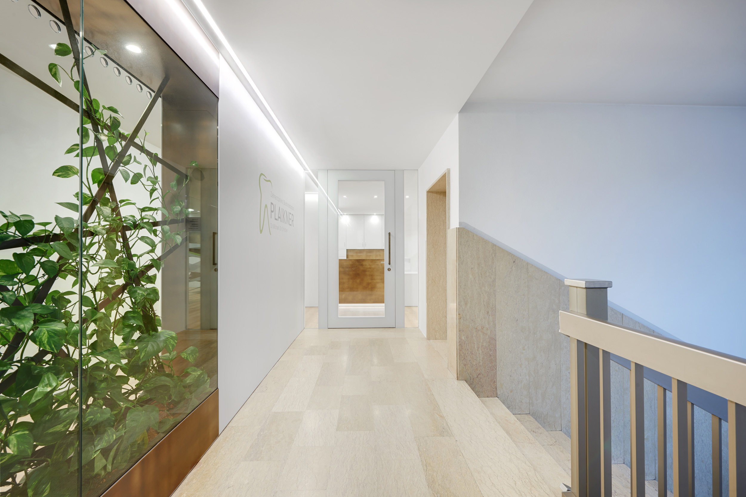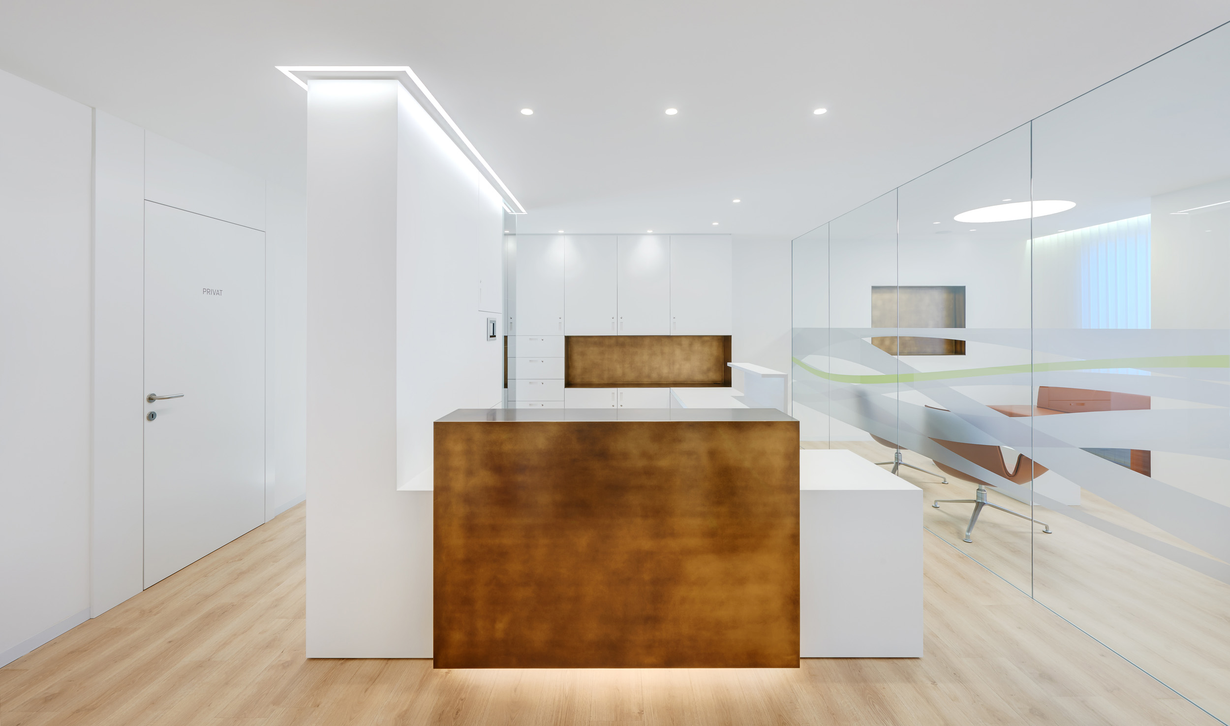 Mit dem Einstieg des Sohnes in die elterliche Praxis war es auch an der Zeit, die 30 Jahre bestehende Praxis rundum zu erneuern und zu erweitern. Es wurde eine Praxis entworfen, welche einerseits die zeitgemäßen Bedürfnisse einer effizienten Praxis befriedigt, gleichzeitig aber die Qualität der arbeitenden Zahnärzte noch vor Behandlungsbeginn sichtbar machen lässt. Eine klare Linienführung, eine übersichtliche, helle und freundliche Praxisatmosphäre, sowie die Verbindung von verschiedenen hochwertigen Materialien charakterisieren den Innenausbau. Das heimelige Gefühl der alten Praxis wird dabei vor allem durch den durchgängig verlegten Holzboden in die neue Praxis transportiert.