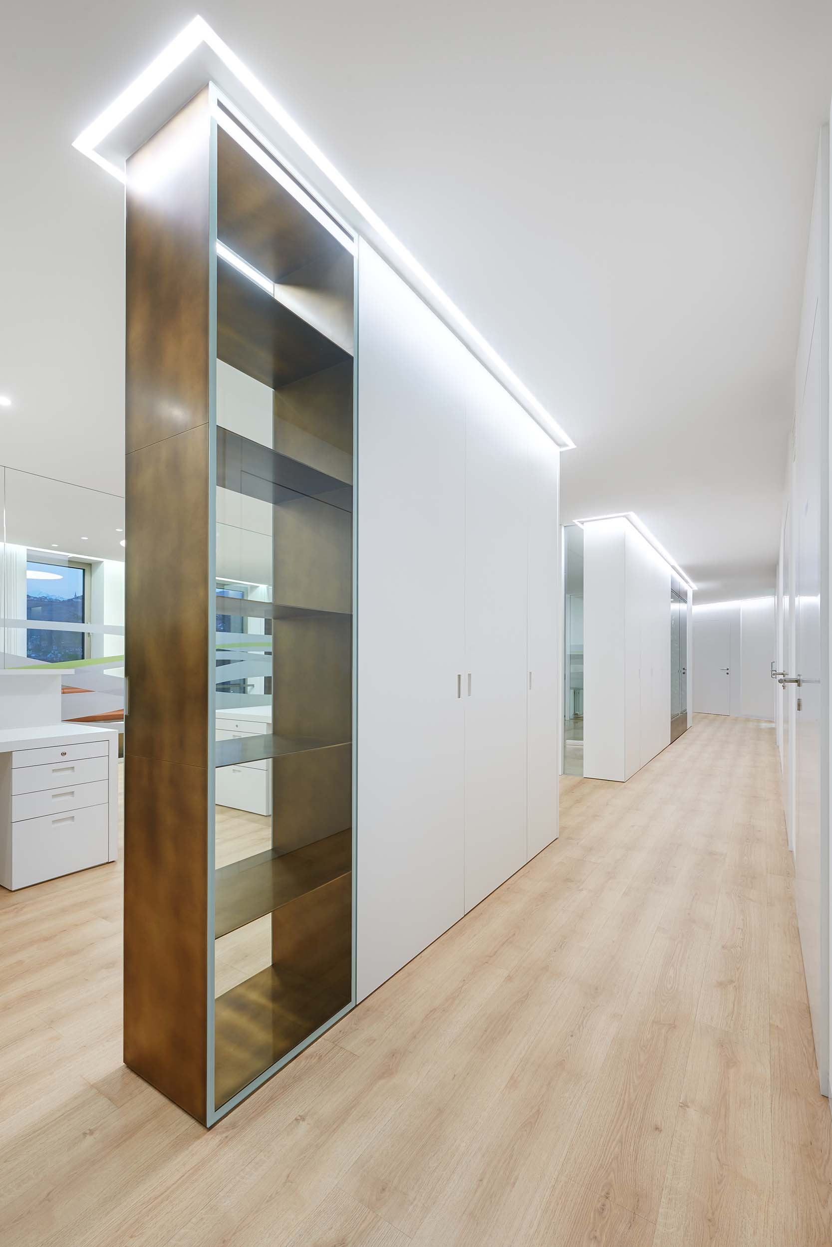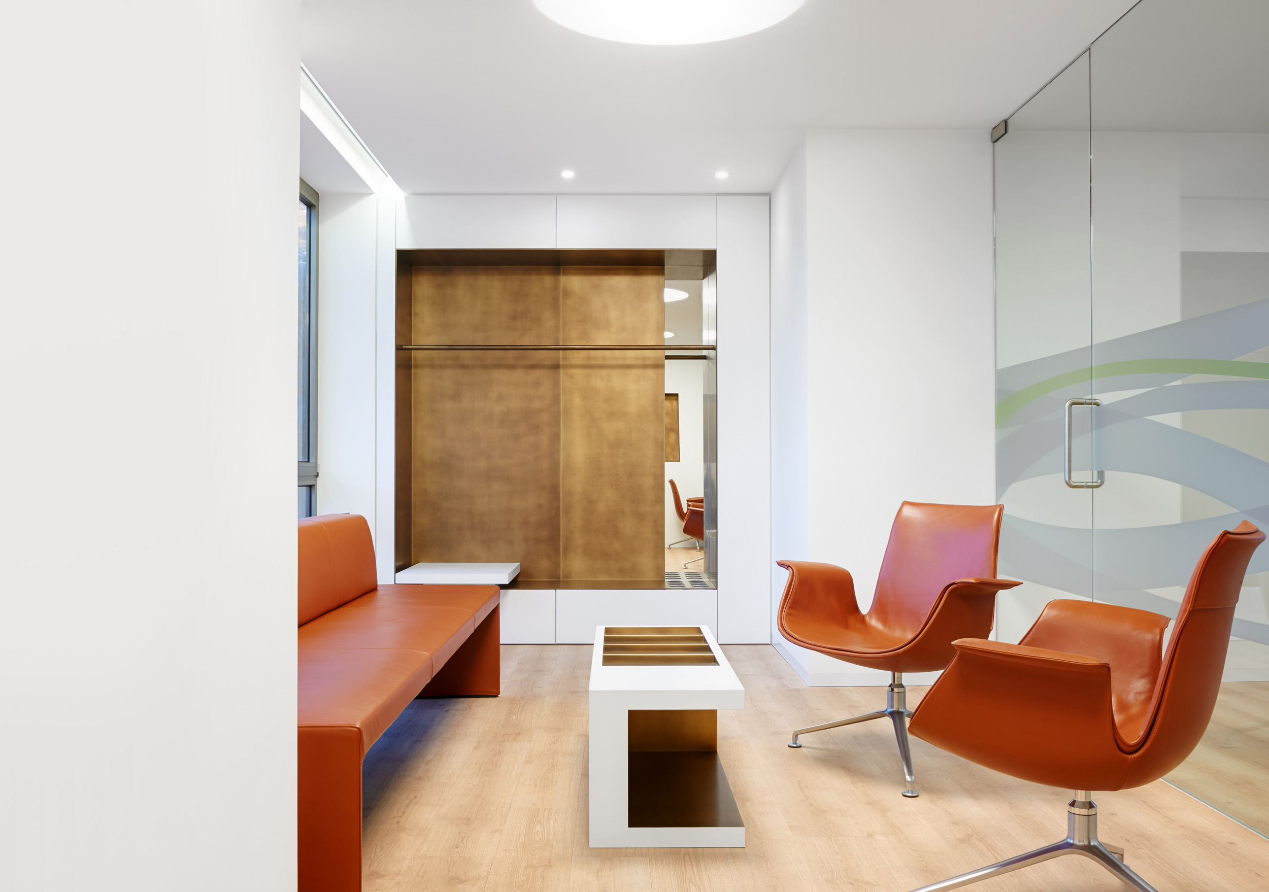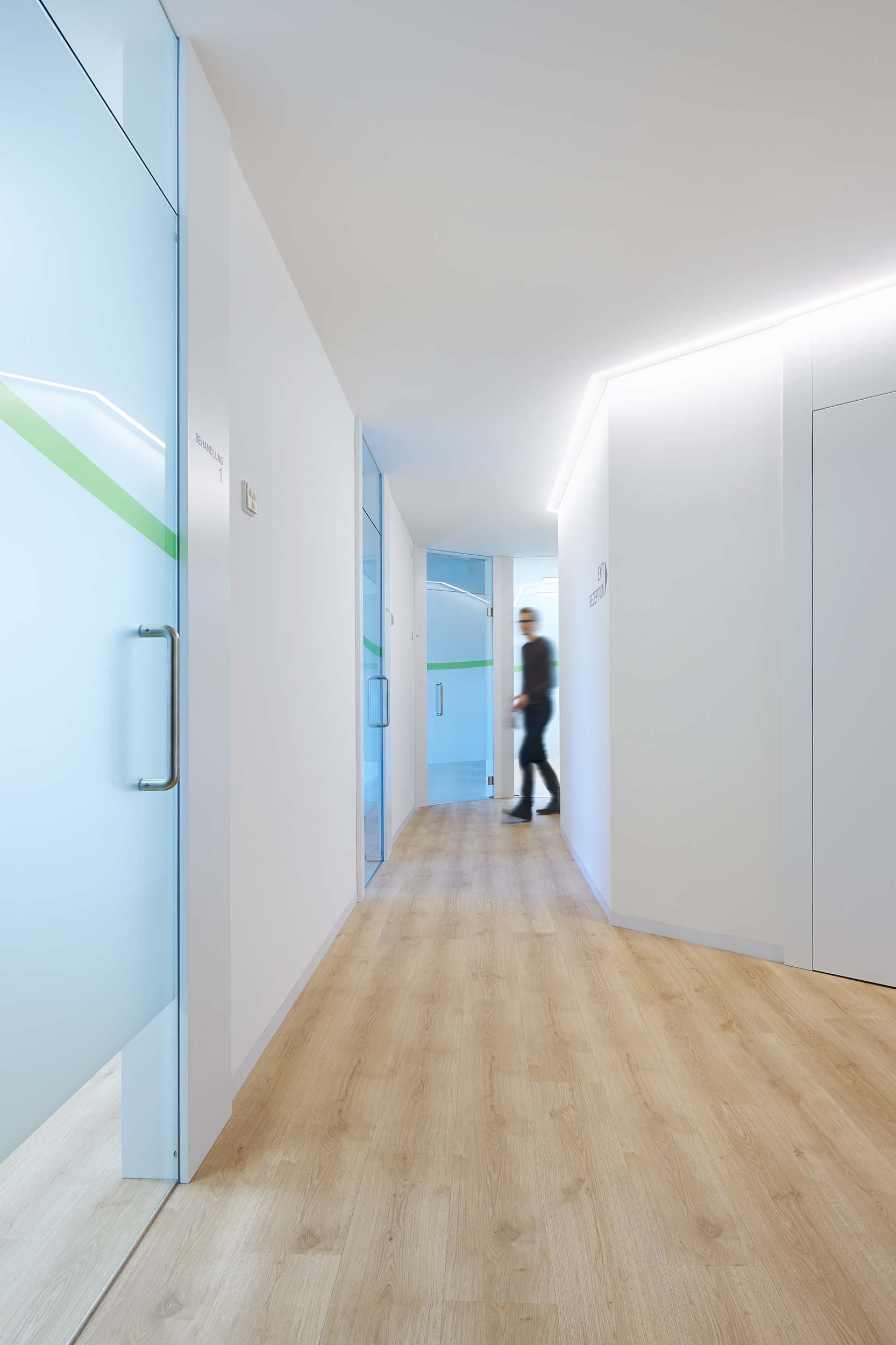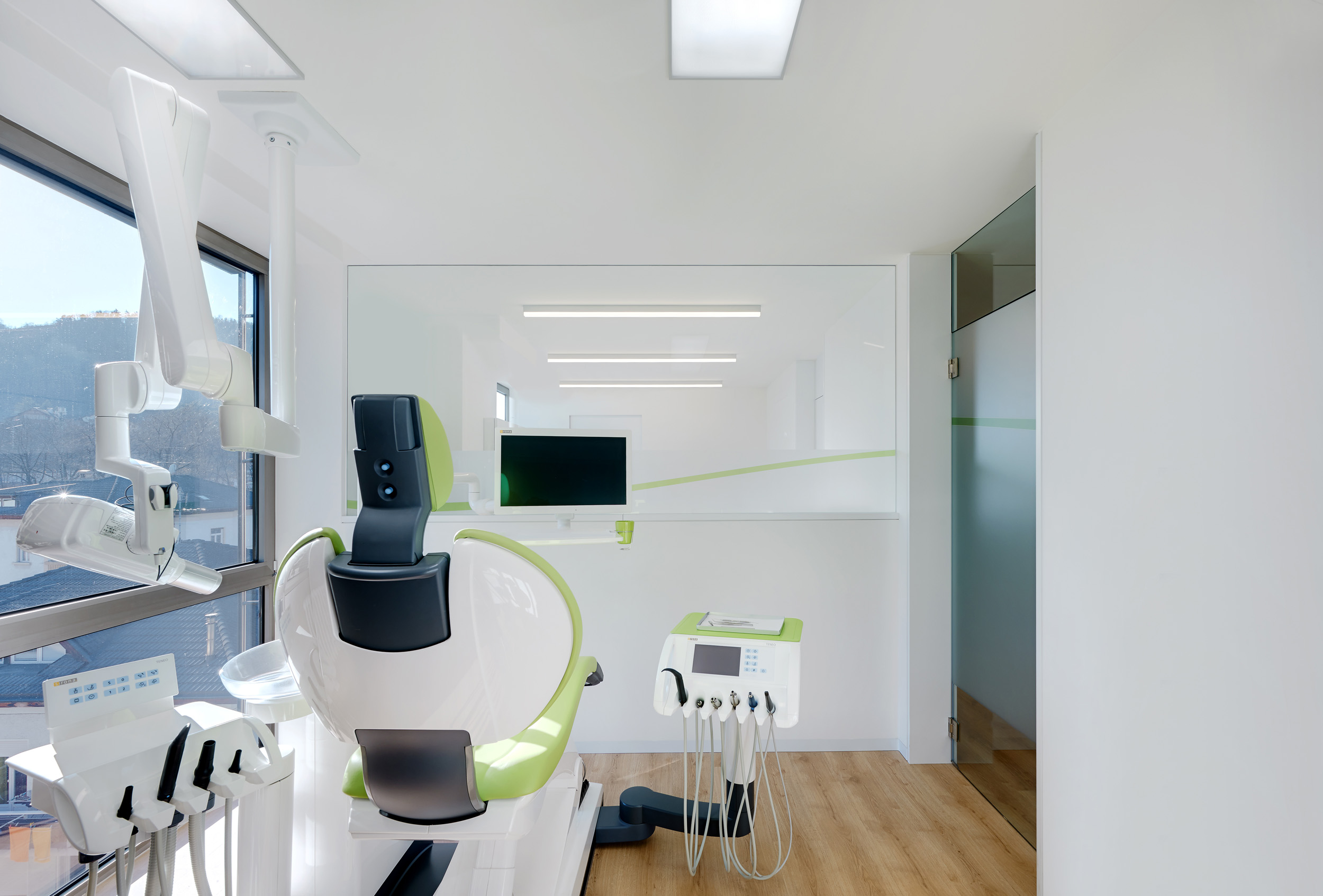Mit dem Einstieg des Sohnes in die elterliche Praxis war es auch an der Zeit, die 30 Jahre bestehende Praxis rundum zu erneuern und zu erweitern. Es wurde eine Praxis entworfen, welche einerseits die zeitgemäßen Bedürfnisse einer effizienten Praxis befriedigt, gleichzeitig aber die Qualität der arbeitenden Zahnärzte noch vor Behandlungsbeginn sichtbar machen lässt. Eine klare Linienführung, eine übersichtliche, helle und freundliche Praxisatmosphäre, sowie die Verbindung von verschiedenen hochwertigen Materialien charakterisieren den Innenausbau. Das heimelige Gefühl der alten Praxis wird dabei vor allem durch den durchgängig verlegten Holzboden in die neue Praxis transportiert.