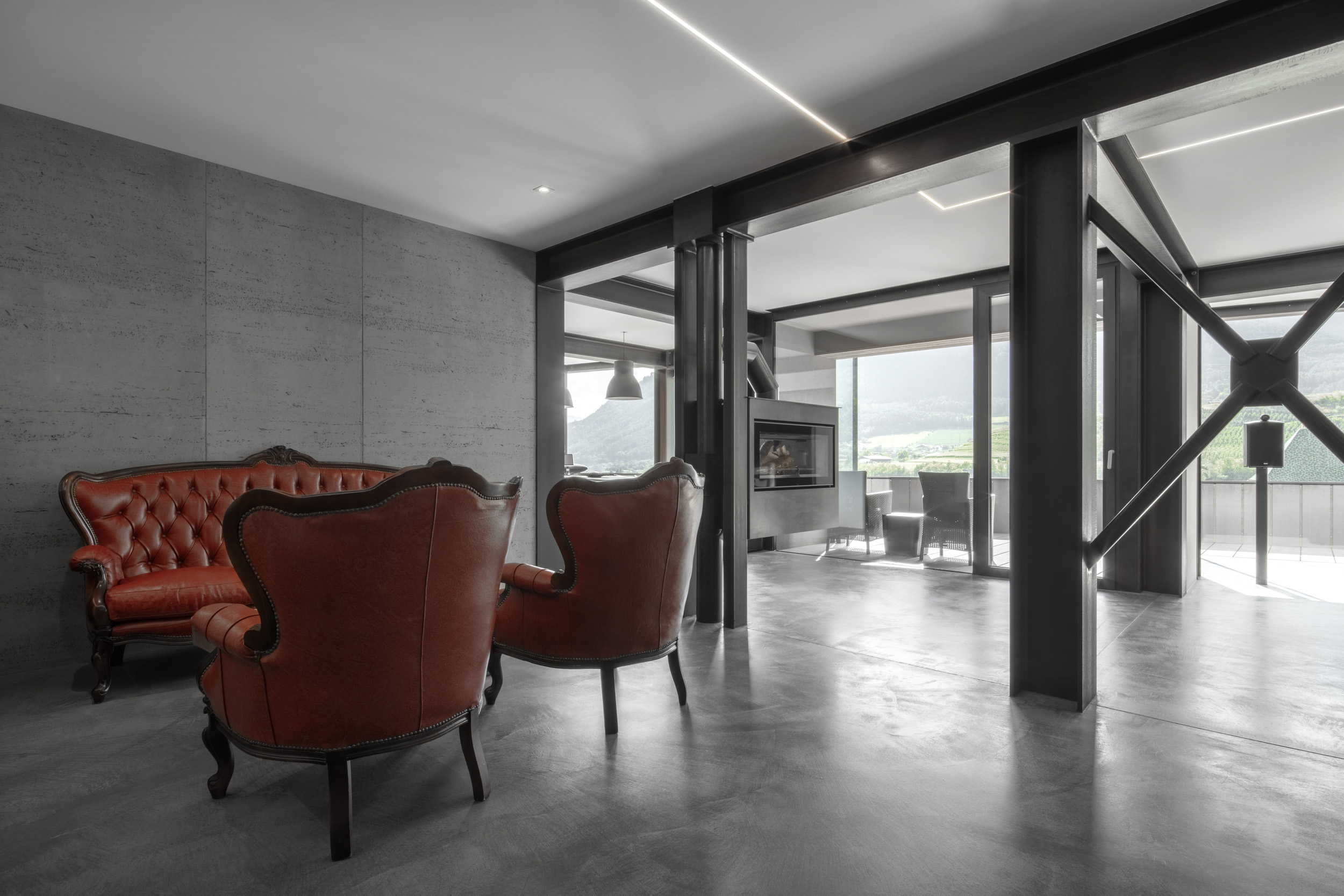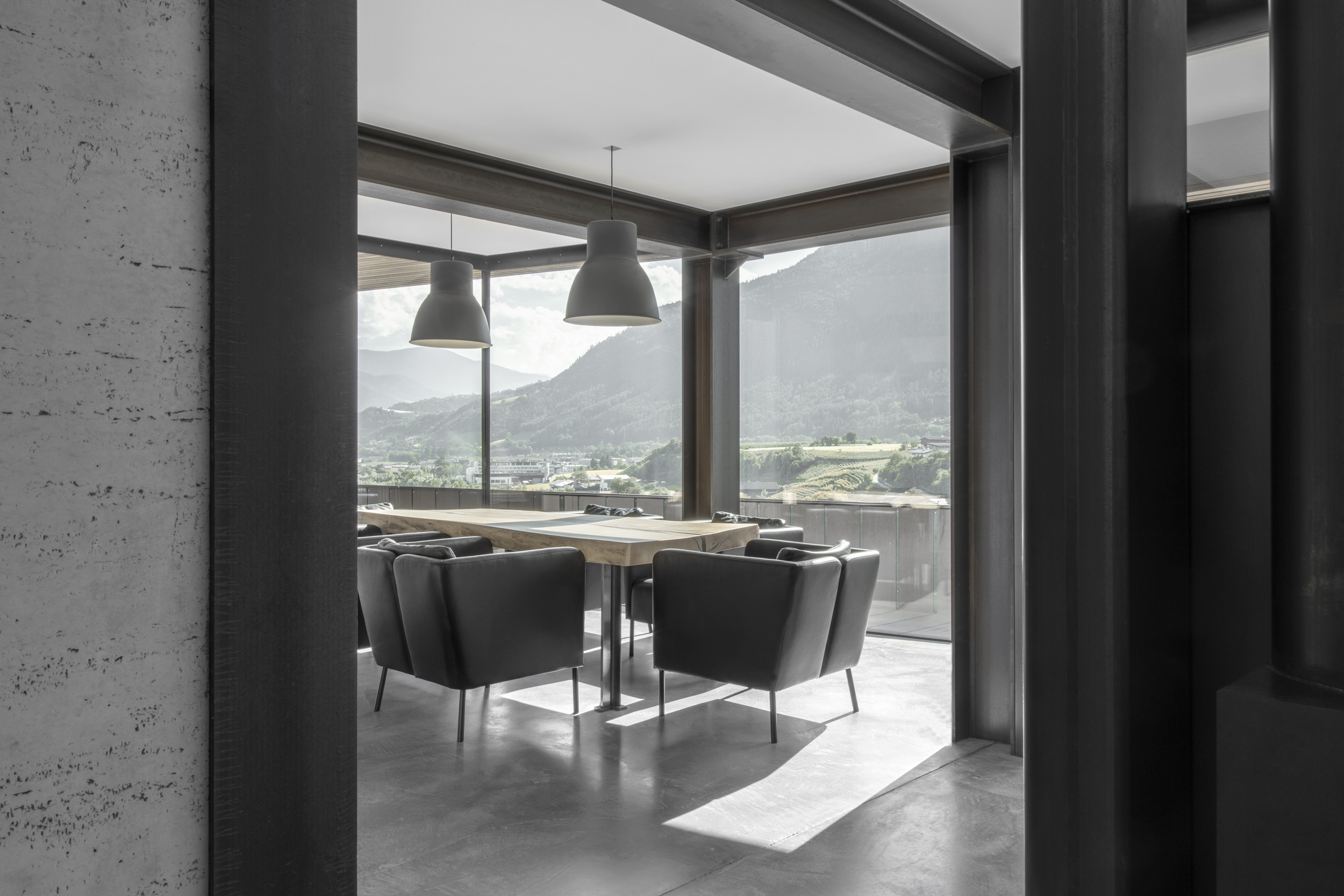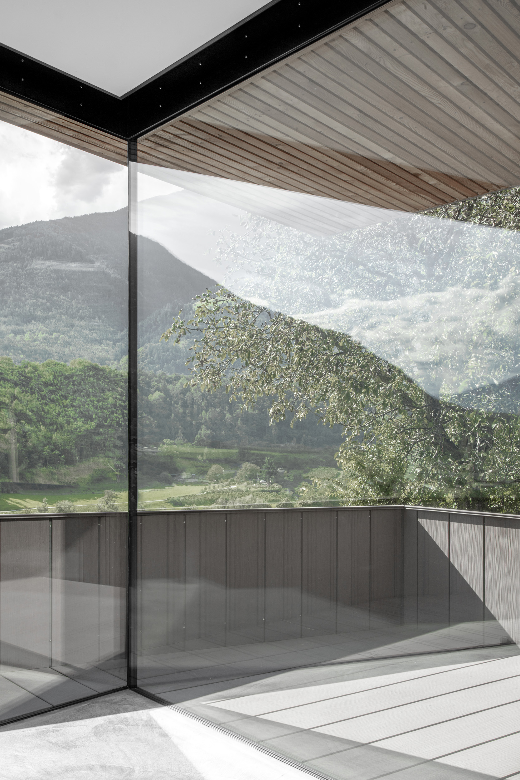Un gioco tra spazio aperto e spazio abitativo caratterizza il piano terra. Le camere aperte e luminose offrono una vista mozzafiato sulla valle e sul panorama. I lavori di ristrutturazione effettuati, orientati alla riprogettazione del piano superiore e del sottotetto, hanno portato struttura, modernità e apertura al piano. Il risultato è stato un migliore utilizzo dello spazio e una maggiore qualità abitativa, ottenuta grazie alla riduzione delle pareti esterne, alle ampie vetrate e alla nuova struttura.