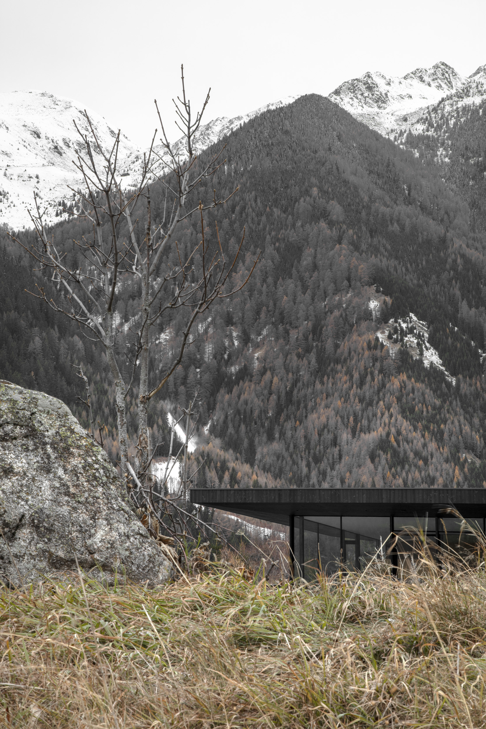 A 1350 metri sul livello del mare si trova il villaggio altoatesino di Vals. In un villaggio costeggiato da cime montuose, l'ampliamento della Casa Z cerca di interagire e fondersi con l'ambiente circostante. L'edificio si sviluppa intorno all'edificio esistente e si inserisce nel paesaggio, reagendo e seguendo la topografia. Pietra e legno, i materiali dell'adiacente paesaggio alpino naturale e costruito, caratterizzano l'ampliamento. Il tetto si protende verso il sole e apre generosamente l'edificio verso sud.