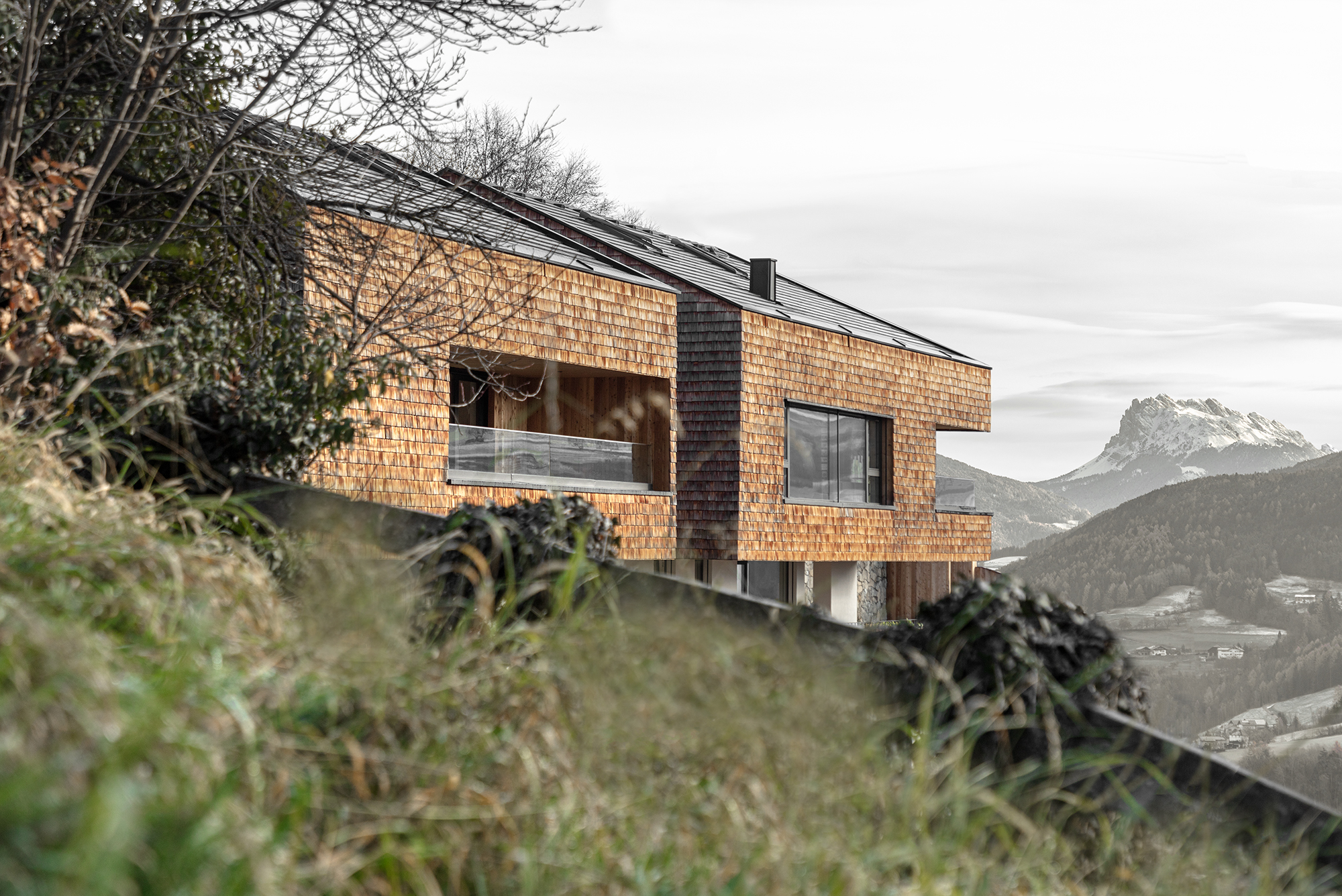La Casa K si trova sopra la Valle Isarco, nel villaggio rurale di Villanders. L'area è caratterizzata da prati, pascoli e castagneti. Oltre al paesaggio culturale, anche la vista sulle montagne delle Dolomiti ha un'influenza decisiva sulla progetto. Materiali tradizionali e naturali caratterizzano l'aspetto del edificio in legno. In particolare, la facciata in scandole riflette la vita ruvida e naturalistica in montagna.