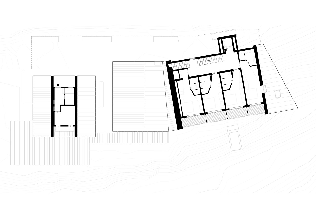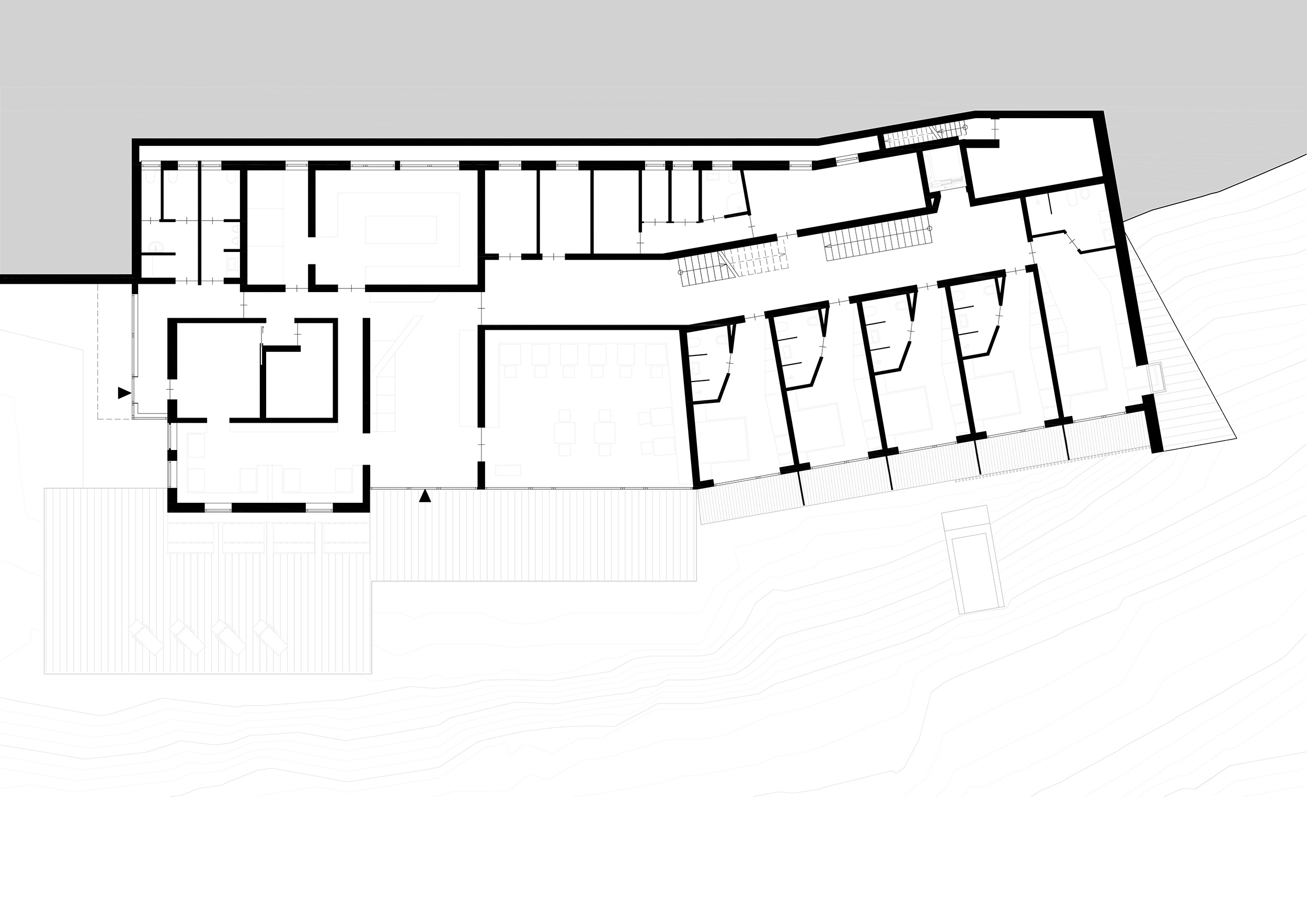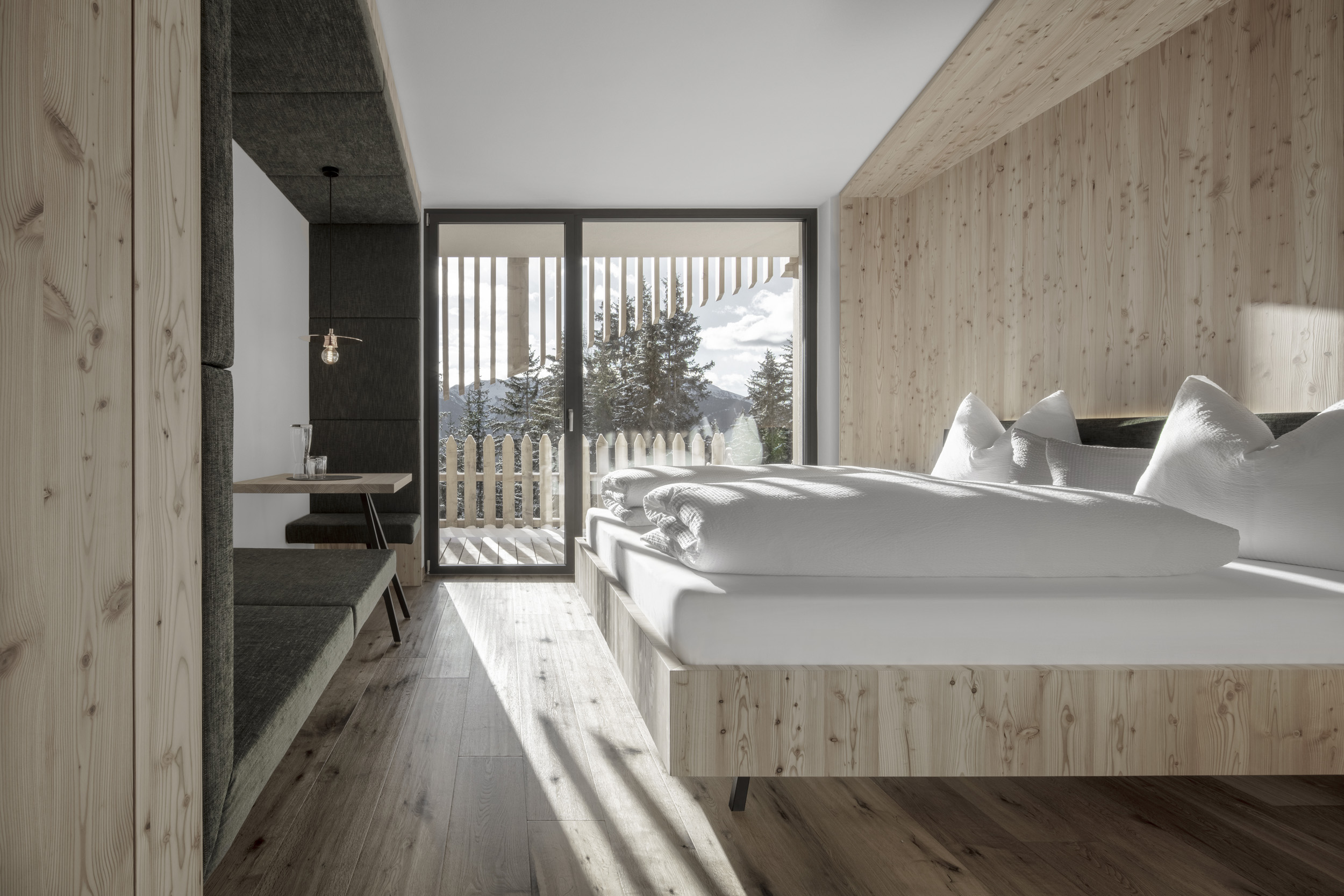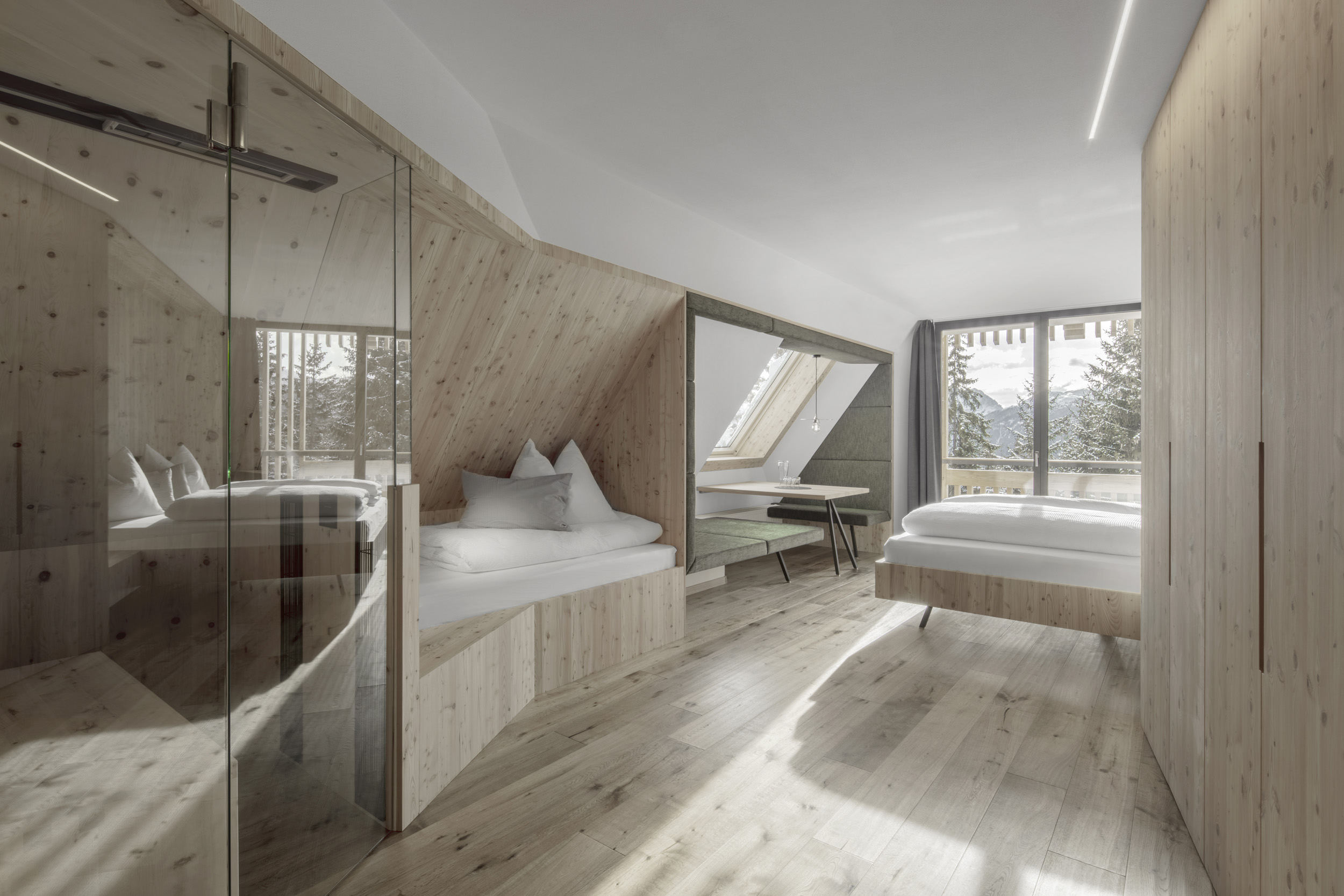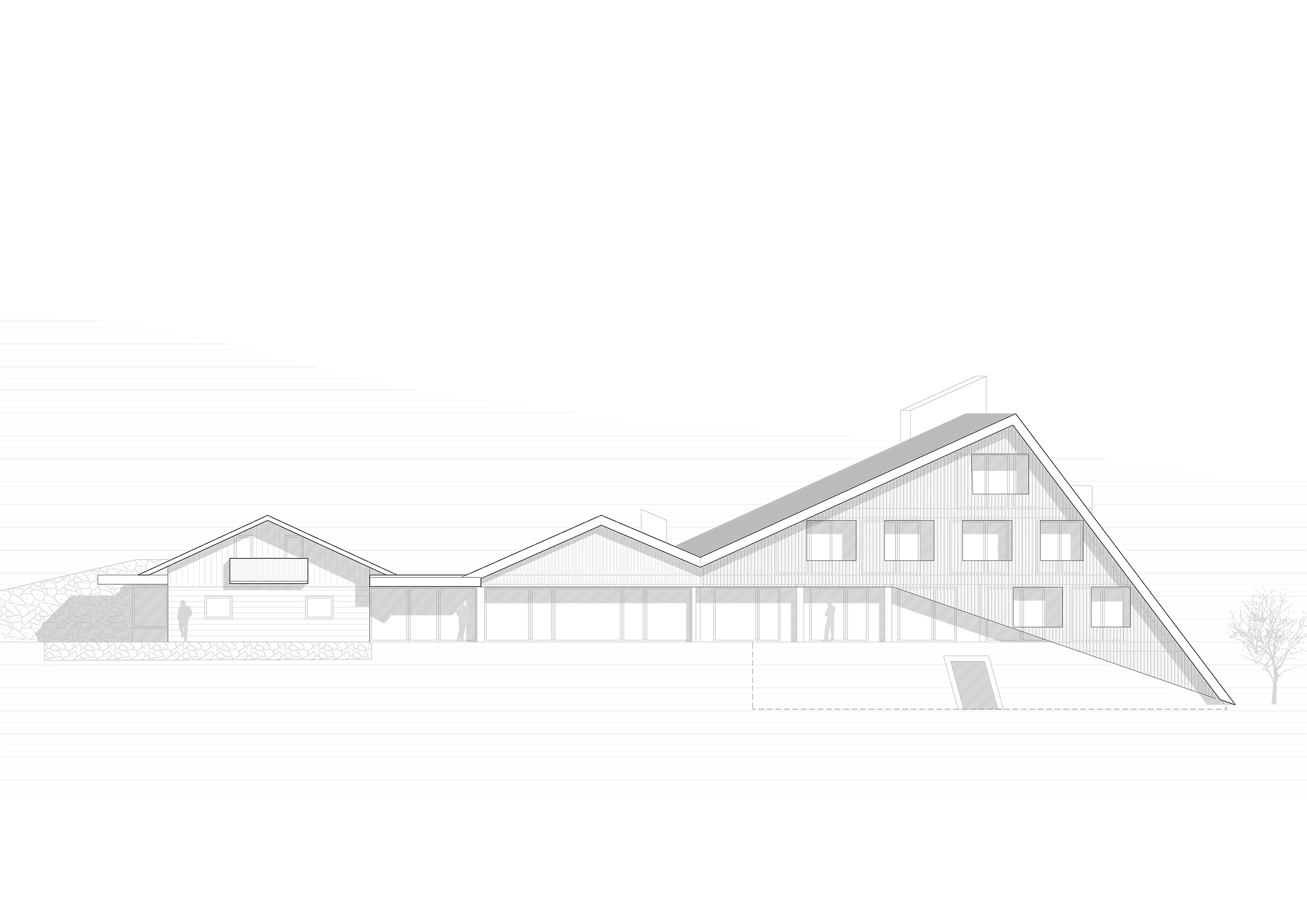 L'Hotel rifiugio Oberhauser sulla Lüsner Alm vorrebbe trasformarsi in una pensione con possibilità di pernottamento e attività annuale. L'edificio esistente deve servire da base per il nuovo edificio, in modo da creare una coesistenza rispettosa tra vecchio e nuovo. Ciò si ottiene soprattutto riprendendo le tipologie costruttive tipiche del luogo, come la facciata perforata. La massa dell'edificio è costituita da singoli volumi che creano un gioco armonico e sono chiusi da un tetto a capanna. La forma risultante conferisce all'edificio il suo carattere e lo integra nel paesaggio.