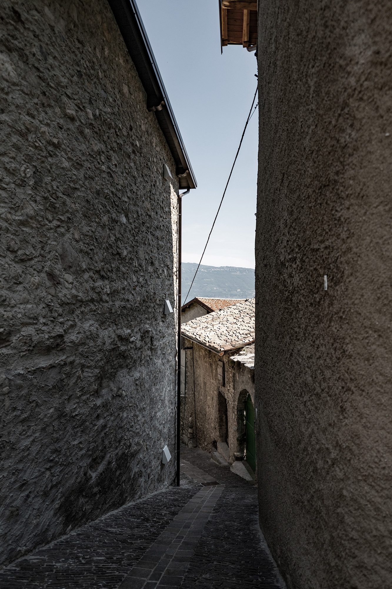 Il Rustico V si trova nel centro di un borgo storico sulla costa occidentale del Lago di Garda. Un fienile storico esistente è stato trasformato in un appartamento contemporaneo con vista sul lago nell'ambito di una ristrutturazione generale. Una planimetria sapientemente studiata ha creato spazi abitativi luminosi e spaziosi su tre piani. La prima zona notte si trova al piano inferiore, che si apre sul cortile del piccolo centro storico. Al piano terra, accessibile a livello del terreno sul lato a monte, si trova la cucina a pianta aperta con zona giorno. La spaziosa zona pranzo si trova al terzo piano. Da qui, una finestra a tutta altezza offre una vista pittoresca sul Lago di Garda e sul paesaggio circostante. Due scale a una rampa in acciaio nero e un atrio a due piani creano una transizione di continuità tra i piani. L'appartamento è stato rifinito con grande attenzione ai dettagli, il design degli interni combina un'eleganza senza tempo con materiali caldi e naturali e incarna lo stile di vita mediterraneo locale.